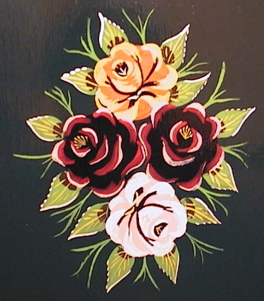 There is something very special in the boatmans cabin of Pangur Bán, the Knobsticks style roses painted by the late Jim Wain
