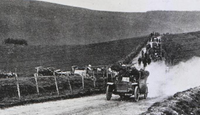 Cairnwell Hill climb, 2nd day. Mr. Walter M Bergius driving.