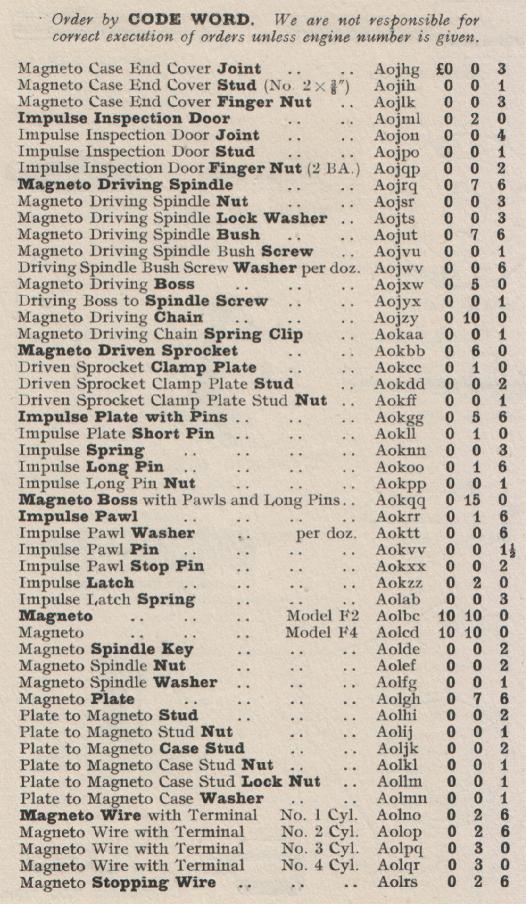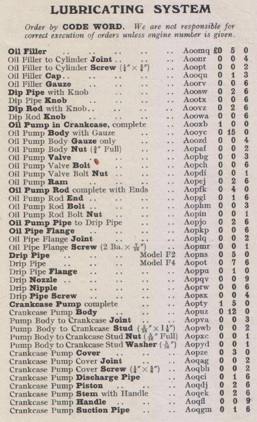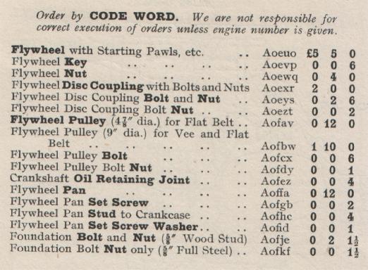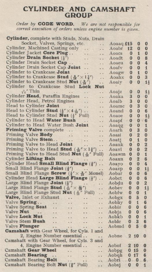 Kelvin Ricardo Model F Spares List