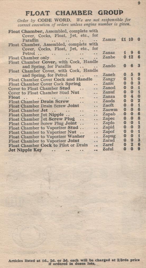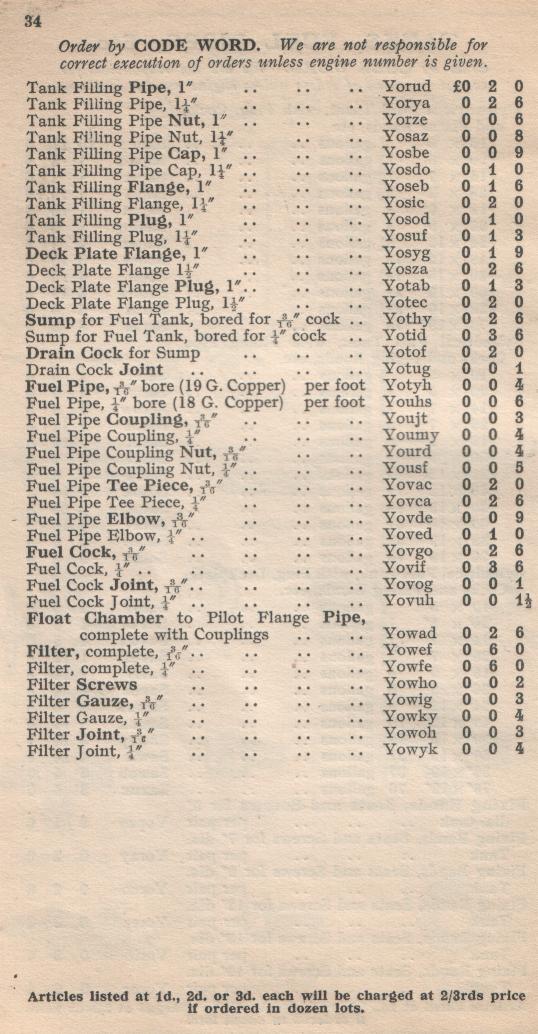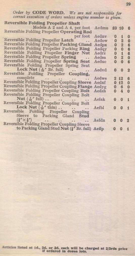 KELVIN-SLEEVE Spares List Model "A"