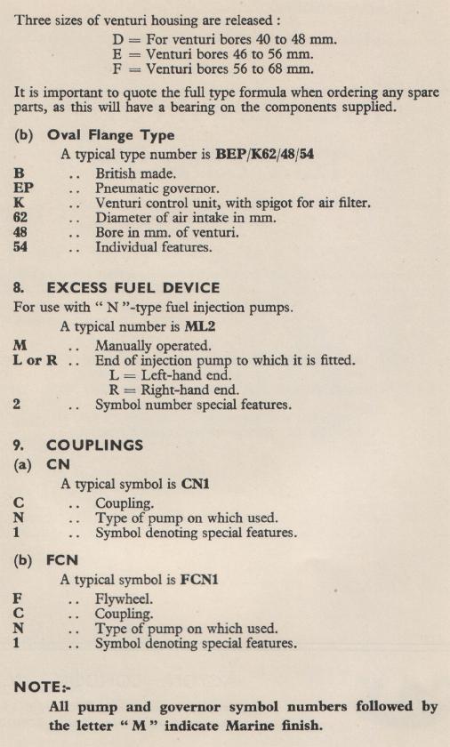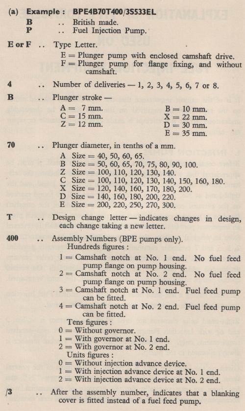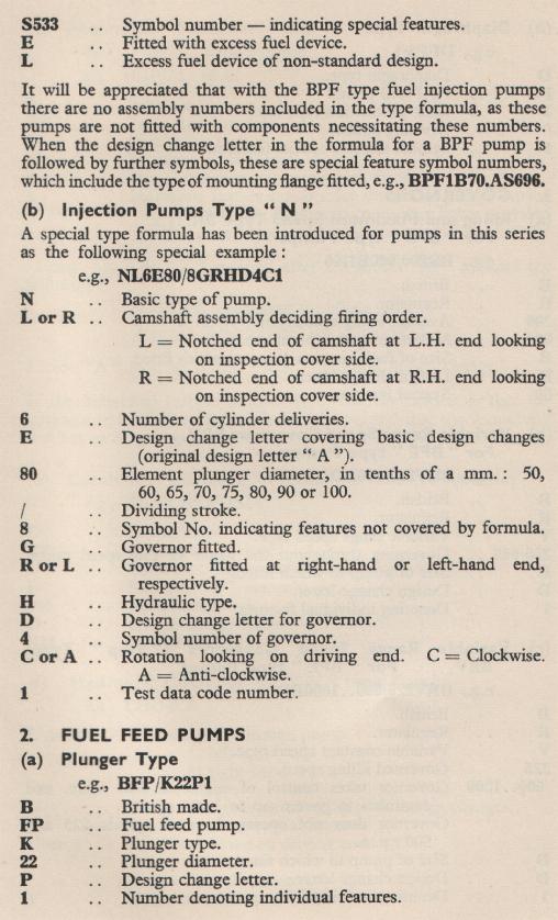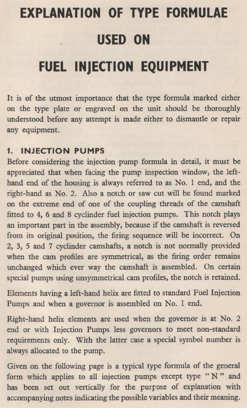 Fuel Injection Equipment Type Formulae